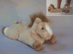 Need a pair of slippers that make a statement? These funny Beige Horse plush animal slippers are just what you need. Each pair of these super soft slippers has a cushy foam sole & makes a great Gift!
